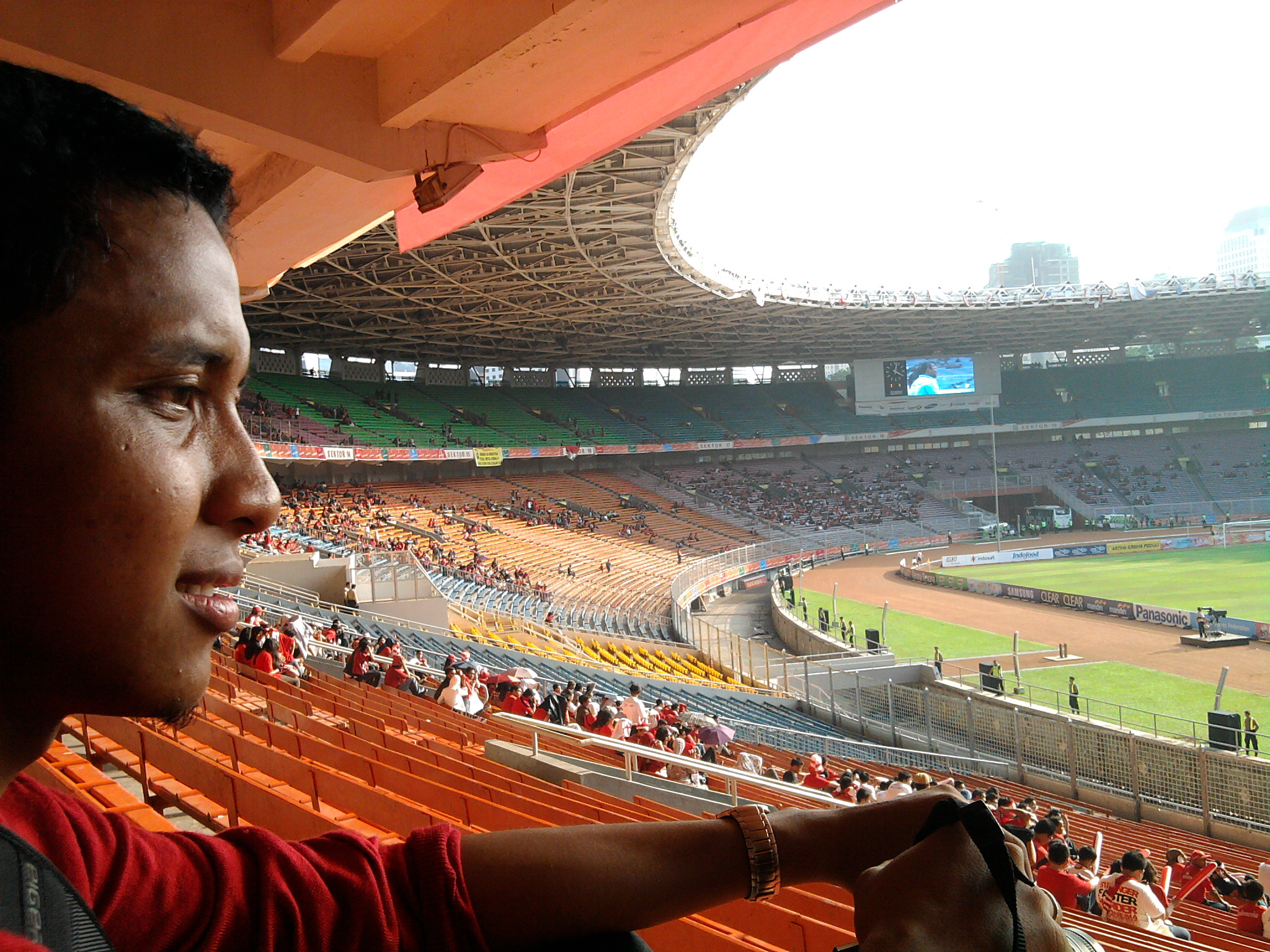 Saya nonton di sana pas final piala AFF kemaren, dan ya pengalamannya mirip-mirip lah. Kedesek-desek sama orang banyak, dan baru sadar pas mau beres, ternyata ada cewek cakep di sebelah yang ikut ngedesek-desek dari pertama. 0_o