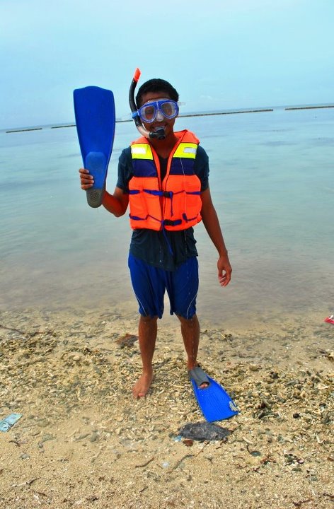 Besok paginya, rencananya pengen liat sunrise, tapi udah ditungguin ga kliatan, karena cuaca agak mendung juga sih. Oya di sini juga bisa sewa sepeda, lumayan biar ga capek jalan. Biaya sewanya cukup murah, seharian sampai besoknya cuma Rp15.000. Sampai di spot utama Pulau Tidung, kamipun siap snorkeling, walupun masih sepi. Katanya sih pemandangan bawah laut ini tetep telihat jelas di pagi hari.