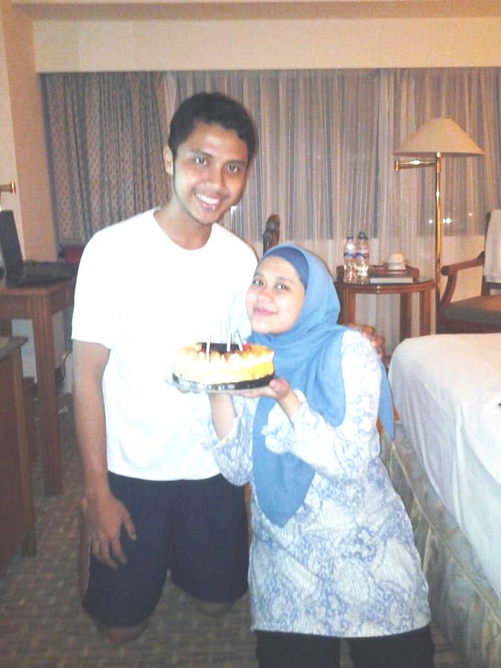 Pergantian hari di tgl 17 Okt itu jadi deh dilewatin sendiri, di kamar hotel, tanpa si ayah, heuhue.. Malemnya baru si ayah dateng ke hotel dengan surprise, tiba-tiba udah ada kue di kamar :-*