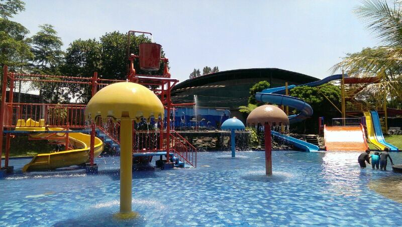 Kolam renang anak, tinggi kolam selutut orang gede-lah, ada pasir pantai-nya di ujung, ada ember tumpah, ada seluncurannya juga, yang di sini aernya dingin.