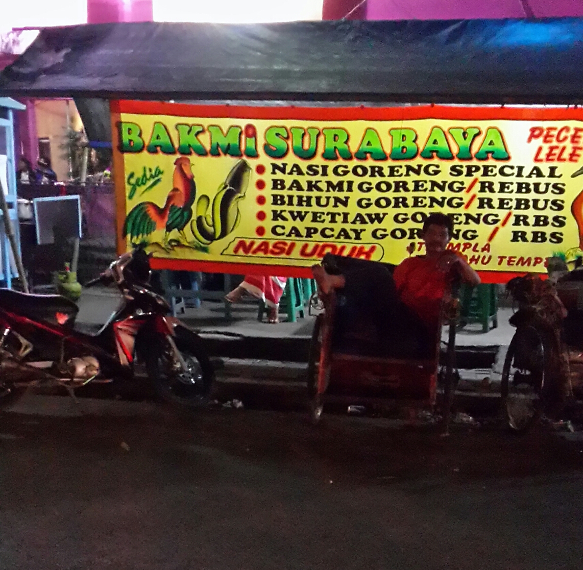 Saya ga tau sejak kapan warung kaki lima ‘Bakmi Surabaya’ milik Pak Pur berdiri di depan apartment. Yang pasti sejak pertama kali saya menginjakkan kaki di sini Pak Pur sudah ada. Menunya ala bumbu Suroboyo semua, mulai dari macam2 menu nasi goreng: nasi goreng telor, nasi goreng ati ampela, nasi goreng pete, dll, ada juga kwetiaw, capcay, bihun, mie goreng, mie godog. Dulu juga Pak Pur sedia ayam goreng, pecel lele, tahu tempe gitu.. Tapi sekarang akhirnya menu ayam goreng itu dipisah tendanya, tendanya sebelahan sama tenda Pak Pur, yang mengelola masih anaknya juga. Jadi usaha tendanya ini dikelola sama Pak Pur, istrinya, dan anak-anaknya.