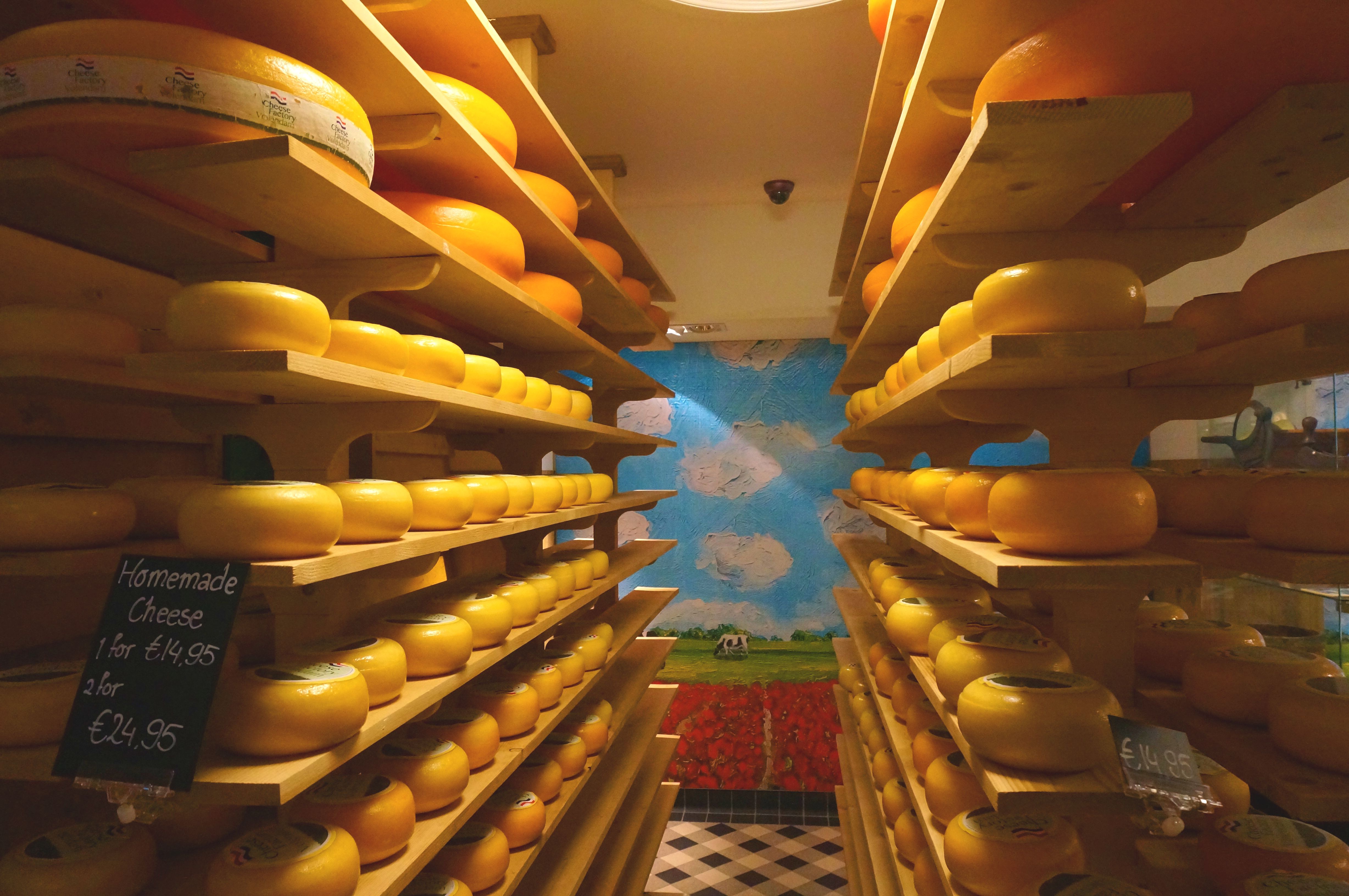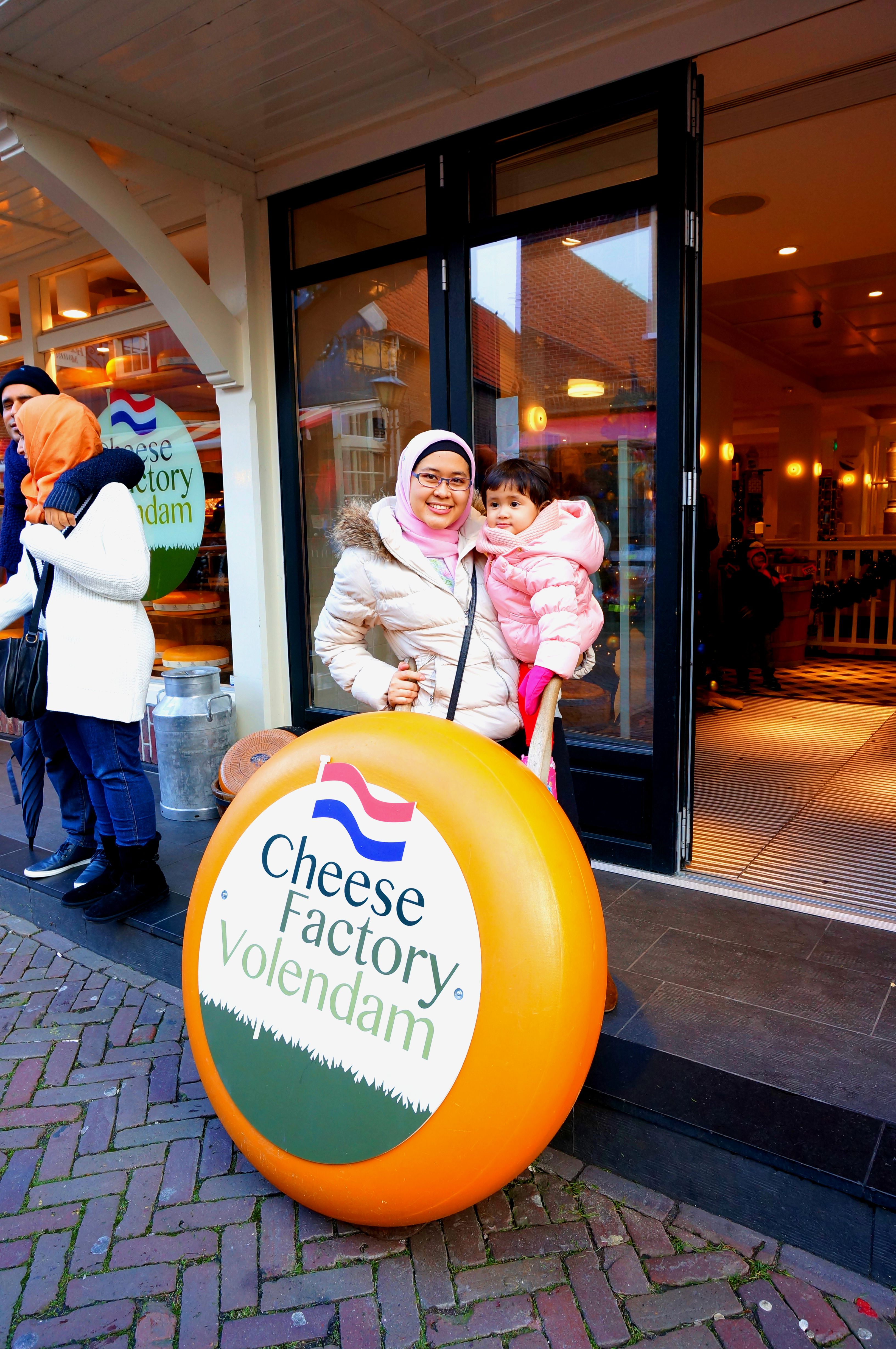 Volendam itu surganya beli oleh-oleh khas Belanda, mulai dari keramik-keramik Blue Delft, pajangan kincir angin, gelas, magnet kulkas, gantungan kunci, sepatu kayu khas Belanda, kaos, tas, dan banyaaaaak lagi. Puaslah pokoknya. Saya ga terlalu banyak belanja (da mikirnya nanti mau ke sana lagi, terutama kalo udah mau pulkam). Di sana juga ada Cheese Factory, di mana semua jenis keju dijual di sana. Dari keju muda sampai keju tua, goat cheese sampai curry cheese. Kita bisa nyicipin gratis pula, hehe.. Katanya sih penduduk Belanda itu sekitar 16 juta jiwa dan jumlah sapi di Belanda itu 18 juta, jadi satu orang tu “punya satu sapi” untuk memenuhi kebutuhan produk sapi-nya seperti susu dan keju. Kira-kira mereka mengonsumsi 15 kg keju setahunnya (wooww bangged yaaa).