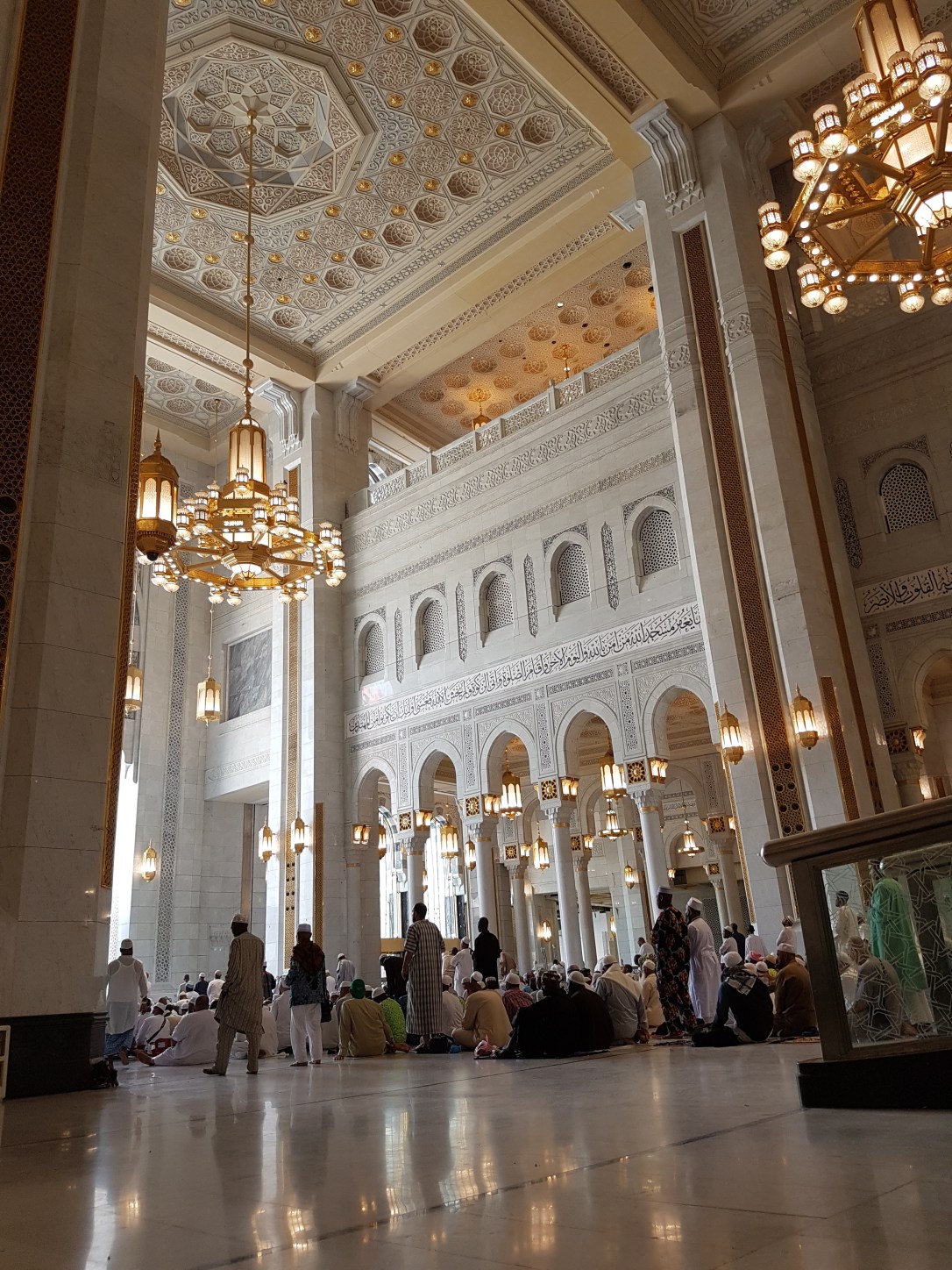 Sedangkan di lantai 1 dan lantai 2, terasa lebih adem dan tidak padat. Tidak ada sengatan matahari langsung ke kepala. Orang-orang yang memakai kursi roda pun bisa tawaf di sana. Kekurangannya, jarak tempuh menjadi lebih jauh daripada di lantai dasar. Sedangkan di lantai atap kesulitannya adalah panas menyengat (tidak ada atap, tapi kurang tahu apa sekarang sudah ditutup atau tidak). Terlihat juga banyak pengguna kursi roda melakukan tawaf di area itu.