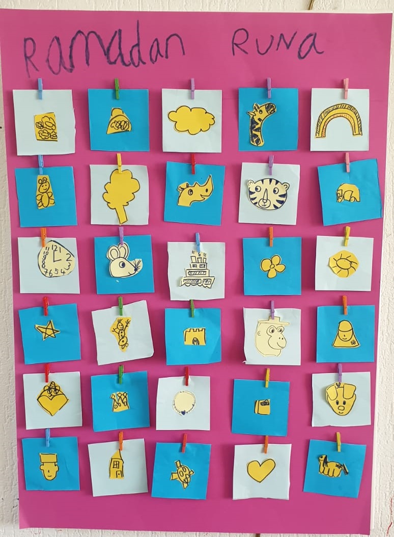 Tarahh.. ini dia dua karton ini akhirnya berhasil dipajang di ruang keluarga kami. Supaya setiap hari bisa terlihat dan membuat kita tetap semangat di bulan Ramadan. Sampai Runa bilang: Runa gak bisa tunggu mau cepet Ramadan! Masya Allah.