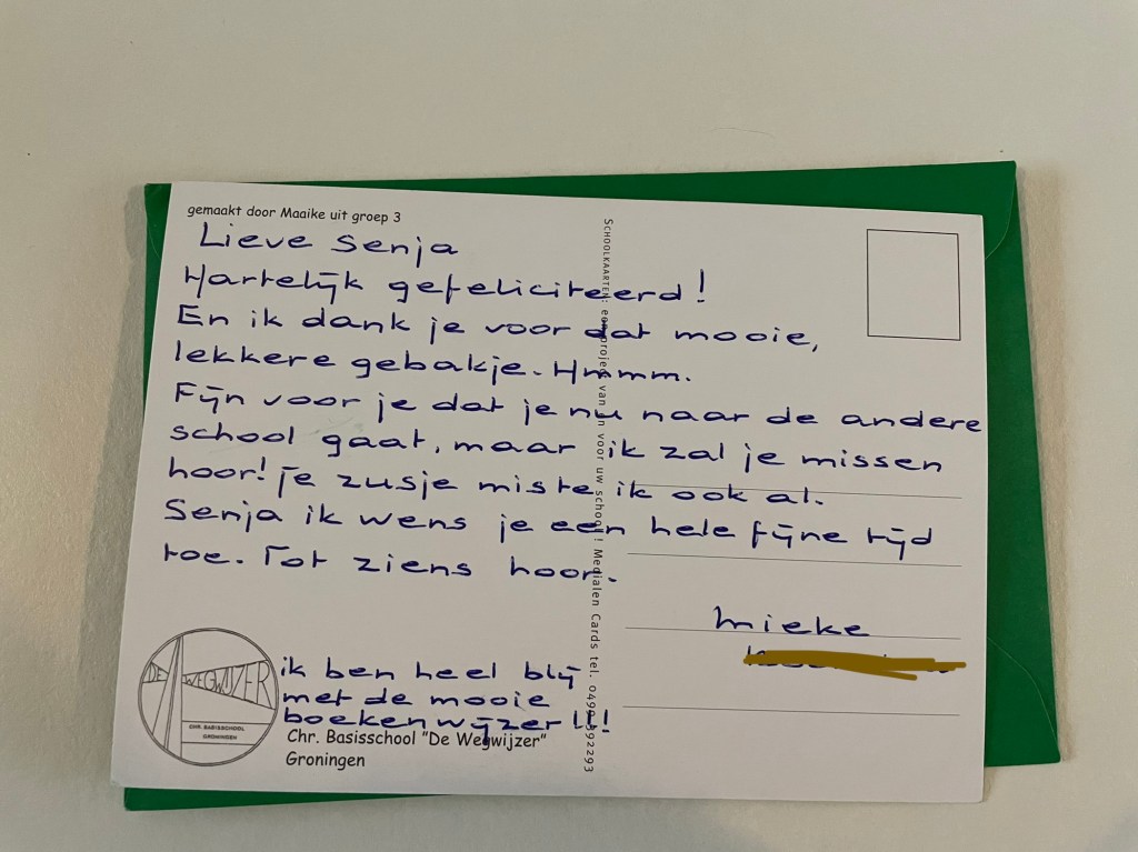 Pekan lalu adalah hari terakhir Senja ke sekolah daycare. Senja udah 4 tahun, artinya Senja akan masuk basisschool. Senja masuk sekolah yang sama dengan Runa. Arah sekolahnya berbeda dengan rute yang biasa kita lewati kalau ke sekolah daycare. Artinya setiap pagi, kami tidak akan melewati rumah si Oma lagi. Ada rasa sedikit janggal eeeh iya ya gak akan dadah-dadah lagi sama Oma tiap pagi.