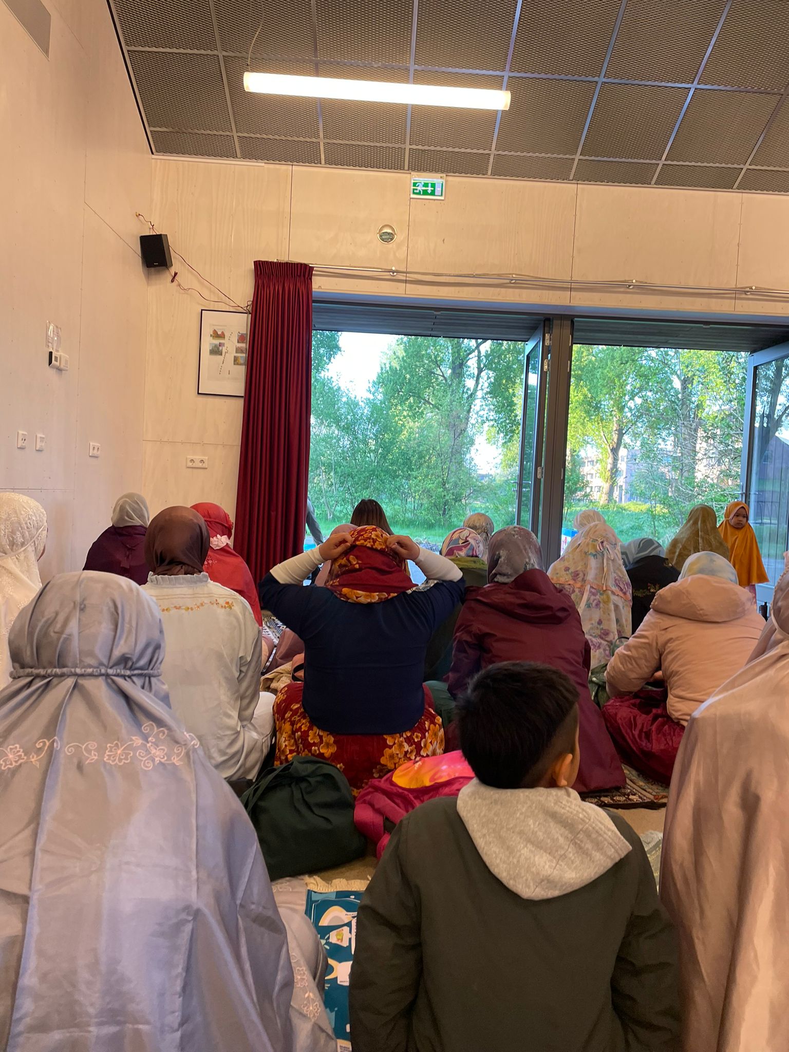 Salat Id tahun ini diadakan di Tuinpad Buurtcentrum, deket Paddepoel. Alhamdulillah tempatnya cukup luas, cuaca juga cerah mendukung, walaupun paginya lumayan dingin. Jamaah yang datang buanyaak banget, mungkin 300 orang ada kali ya? Masya Allah. Bapak-bapak yang kebagian salat di luar, bagian dalam diisi oleh ibu-ibu dan anak-anak. Kami sudah mulai berkumpul di lokasi sekitar pukul 7 CEST. Pukul 7.30 salat sudah dimulai, lalu ditutup dengan ceramah dan doa. Alhamdulillah, bisa melaksanakan salat Id dan merayakan lebaran dengan proper, setelah dua tahun lebarannya pas kondisi pandemi dan sempat lock down juga. Bersama saudara-saudari muslim. Ada rasa mellow juga tetep sih. Kan kebayangnya ingin berkumpul dengan orang tua dan saudara-saudara di Indonesia. Pas kami baru bangun dan siap-siap untuk salat Id, keluarga di Indonesia udah wara-wiri silaturahmi ke mana-mana (Di Indonesia sudah kira-kira pukul 12an). Foto-foto di grup keluarga bertaburan di whatsapp.